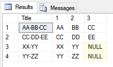 INSERT Test_TB VALUES ('AA-BB-CC'),('CC-DD-EE'),('XX-YY'),('YY-ZZ')