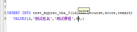 Insert语句字段对应提示