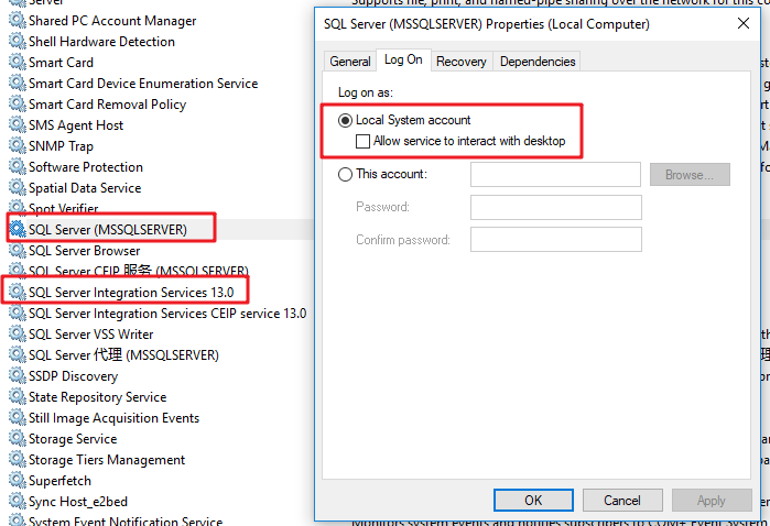 说明:若改为 Local System 之后仍无法解决,可以尝试改为以administrator账户登陆。