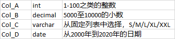 项目中偶尔会有造数据进行测试的情况,根据常见的数据特征,我这里假设数据某表Table_X含4个字段,每个字段的要求如下,需要造出5000条数据。